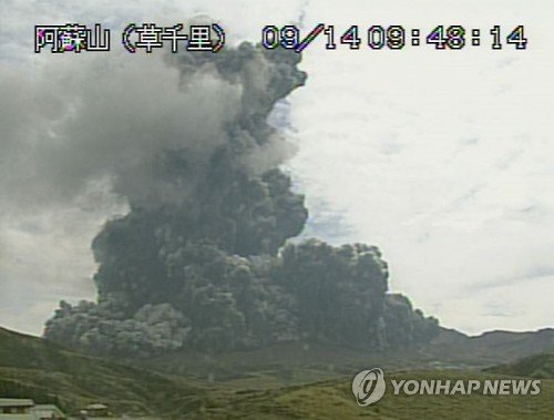 14일 일본 기상청은 "이날 오전 9시 43분 구마모토(熊本)현 아소산(阿蘇山)이 분화했다"고 밝혔다.