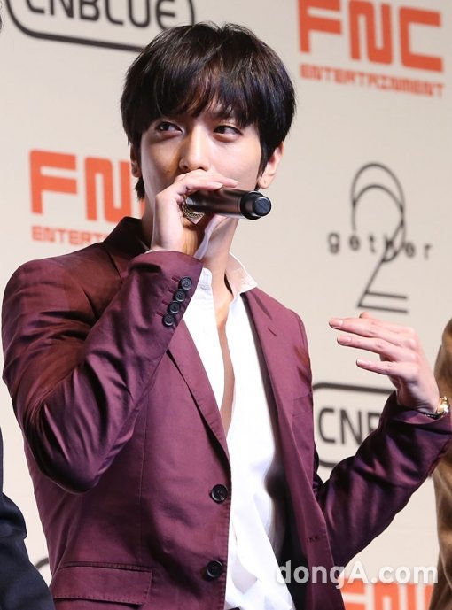 씨엔블루의 정용화가 14일 서울 광진구 악스코리아에서 열린 정규 2집 ‘2gether’ 발매쇼케이스에서 인사말을 하고 있다.