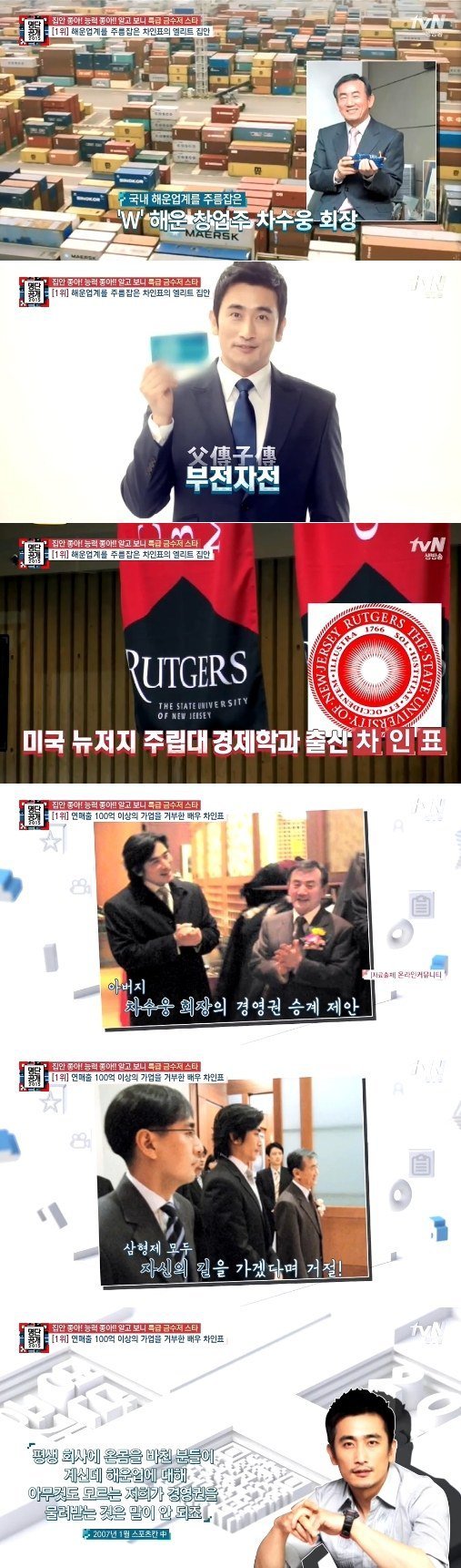 차인표는 14일 방송된 tvN ‘명단공개 2015’ 연예계 금수저 집안 1위로 선정됐다.