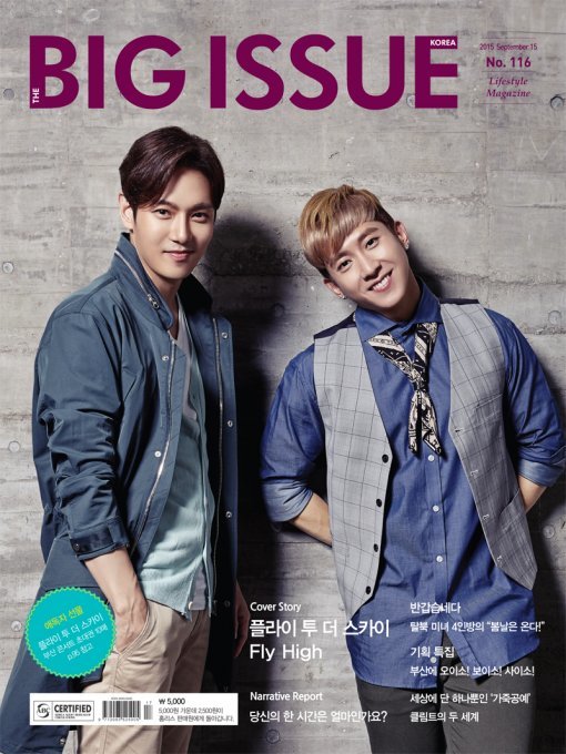 플라이투더스카이는 15일 발간되는 라이프 스타일 매거진 빅이슈 116호의 표지 커버를 장식했다.