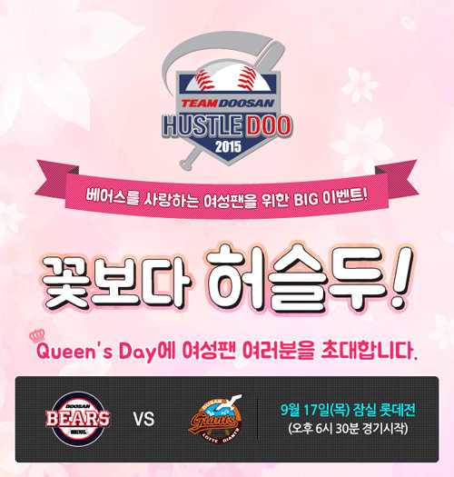 프로야구 두산베어스가 17일(목) 잠실 롯데전 홈경기를 ‘퀸스 데이(Queen’s Day)’로 지정하고, 여성 팬을 위한 다양한 이벤트를 실시한다.