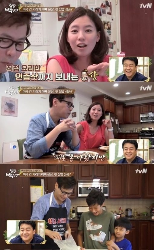 윤상의 아내 심혜진은 “밥도 못하는 남편을 걱정했는데 이제 직접 요리도 해먹고 많이 변했다. 찌개도 끓여먹고 반찬도 사진 찍어서 보낸다”면서 “비록 남편의 배가 나왔지만 보기 좋다. 백선생님께 정말 감사드린다”고 감사 인사를 전했다.