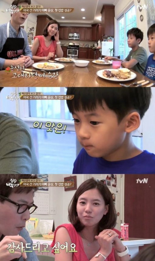 윤상이 손수 만든 요리에 심혜진은 맛있다고 칭찬했고 아들 역시 맛있다고 말했다. 특히 심혜진은 남편에게 요리를 가르쳐준 백종원에게 감사의 마음을 전했다.