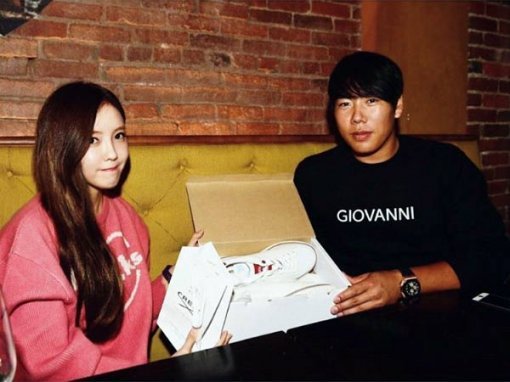 공개된 사진에는 효민과 강정호가 쑥스러운 듯한 표정으로 서로 선물을 주고 받는 모습이 담겨있다. 이날 효민은 강정호 선수의 활약을 응원하며 ‘그랜드슬램’이라는 이름을 가진 랜드로바의 스니커즈를 선물한 것으로 밝혀졌다.