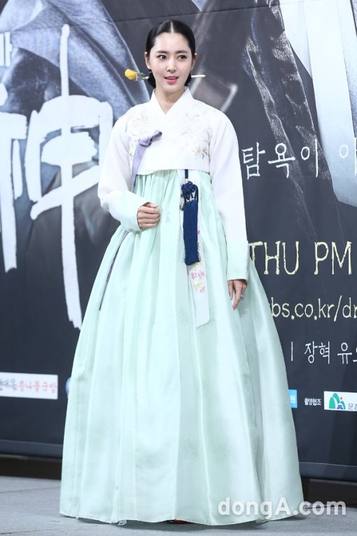 배우 한채아가 16일 오후 서울 강남구 임피리얼 팰리스 호텔에서 열린 KBS2 새 수목드라마 ‘장사의 신-객주 2015’제작발표회에 참석해 포토타임을 하고 있다.