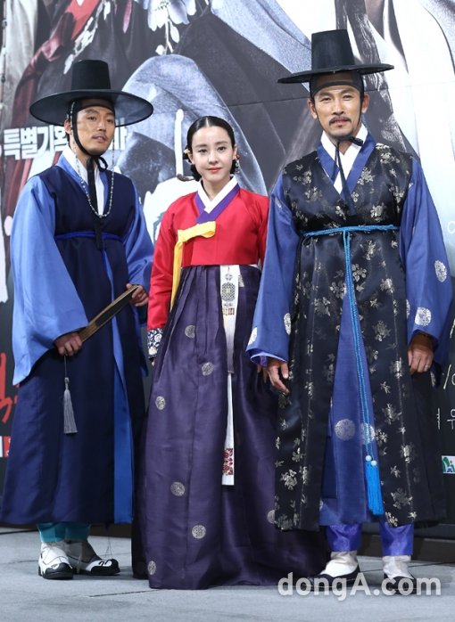 배우 장혁(왼쪽부터), 박은혜, 유오성이 16일 오후 서울 강남구 임피리얼 팰리스 호텔에서 열린 KBS2 새 수목드라마 ‘장사의 신-객주 2015’제작발표회에 참석해 포토타임을 하고 있다.