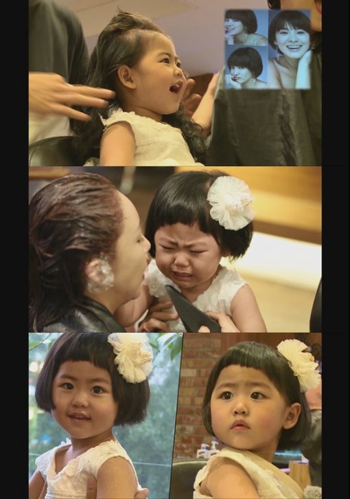 라희와 라율이는 머리를 자르기 전 한껏 들뜬 모습을 보였지만, 잘려나간 머리카락을 보고는 화들짝 놀라 눈물을 터트렸다.