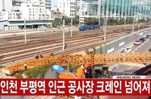 지하철 1호선 인천 부평역 철로에 건설용 크레인이 넘어지는 사고가 일어났다.