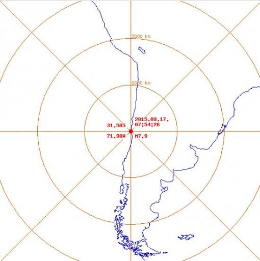 미국 지질조사국(USGS)은 “진앙은 산티아고 북서쪽 246㎞ 떨어진 곳”이라고 밝혔고, 태평양쓰나미경보센터는 “수시간 내에 칠레와 페루 해안에서 쓰나미가 발생할 가능성이 있다”고 경고했다.