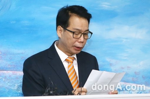 김현중 측 변호를 맡고 있는 이재만 변호사가 17일 오후 서울시 서초구 법무법인 청파 사무실에서 열린 긴급기자회견에서 입장으로 밝히고 있다.
