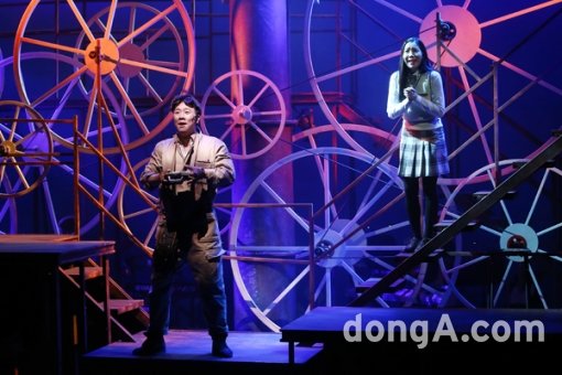 배우 김태한, 박란주가 17일 오후 서울시 동숭동 TOM에서 열린 뮤지컬 ‘무한동력’ 프레스콜에 참석해 공연을 하고 있다.