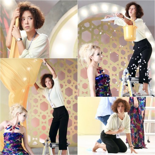 이 가운데 공개된 사진 속 김혜진은 허드렛일을 도맡아 하며 편집팀 콩쥐로 전락해 시선을 사로잡는다. 마치 특수효과 기계라도 된 듯 온몸을 사용해 화보 촬영을 돕고, 사다리를 밟고 올라가 수동으로 꽃가루를 날리는 것부터 어깨 탈골이 우려될 정도로 열성적으로 천을 흔들며 맨발로 바닥을 기어 다니기까지해 안타까움을 자아낸다.