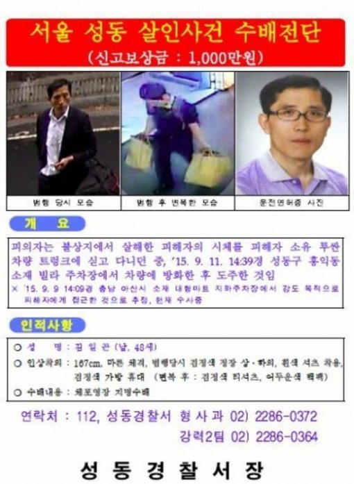트렁크 여성 시신의 유력 용의자 김일곤이 검거됐다.