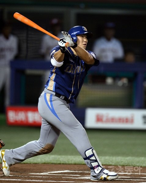 1위 삼성 추격을 끝까지 포기하지 않고 턱밑까지 따라 붙은 NC에는 에릭 테임즈만 있는 것이 아니다. 테임즈가 40홈런-40도루에 도전할 수 있는 힘에는 다음 타선에 버티고 있는 프랜차이즈 스타 나성범(26·사진)이 있다. 그 진가는 17일 대전 한화생명이글스파크에서 빛을 발했다.