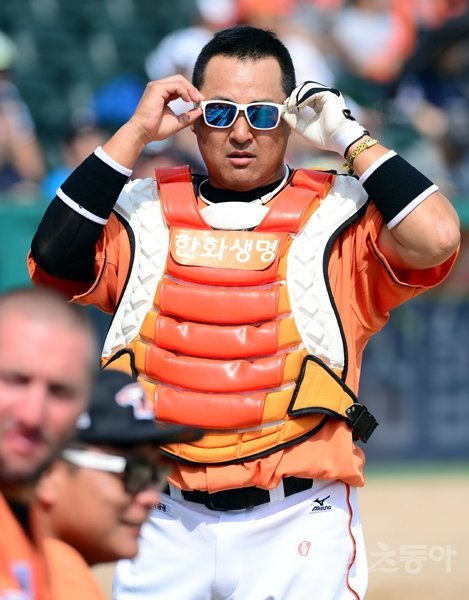 20일 대전 한화생명 이글스파크에서 ‘2015 타이어뱅크 KBO리그’ 한화 이글스와 두산 베어스의 경기가 열렸다. 한화 조인성이 경기를 준비하고 있다.