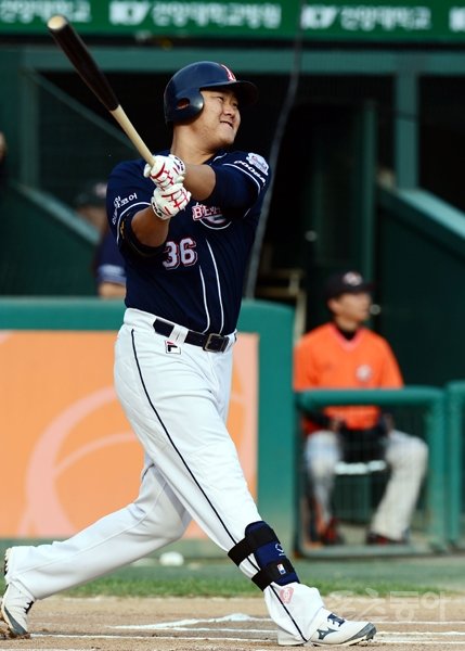 20일 대전 한화생명 이글스파크에서 ‘2015 타이어뱅크 KBO리그’ 한화 이글스와 두산 베어스의 경기가 열렸다. 6회초 무사에서 두산 오재일이 한화 송창식을 상대로 우월 솔로 홈런을 쏘아올리고 있다.
