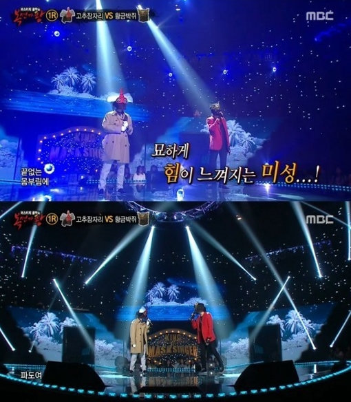 20일 방송된 MBC '일밤-복면가왕'에서는 '윙윙윙 고추잠자리'와 '어디에서 나타났나 황금박쥐'가 1라운드 대결을 펼치는 장면이 전파를 탔다.