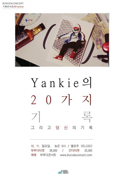 얀키의 기록을 나누는 이번 '얀키의 20가지 기록 그리고 당신의 기록'의 선구매 티켓인 부루다티켓은 부루다콘서트 공식 홈페이지에서 오는 22일까지 예매 가능하다. 자세한 내용은 부루다콘서트 공식 홈페이지나 페이스북의 공지사항을 통해 확인할 수 있다.