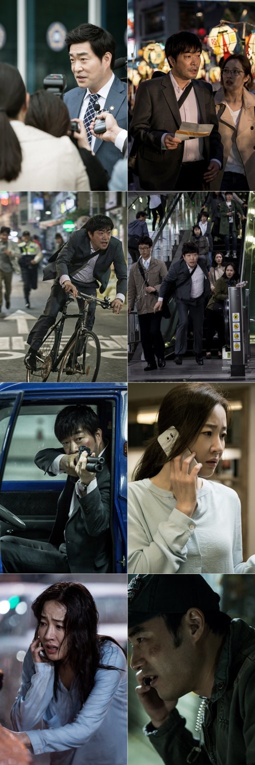 여기에 ‘고동호’의 아내 ‘조연수’ 역을 맡은 엄지원은 핸드폰을 놓지 않은 채, 긴박한 위기에 처해있는 아내의 모습으로 긴장감을 더한다. 더불어 현재와 과거를 오가는 정체 불명의 용의자 ‘도재현’으로 분한 배성우 역시 핸드폰을 손에 움켜 쥐고 묘한 미소를 짓고 있는 표정으로 궁금증을 자아낸다.