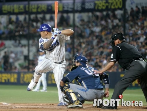 22일 오후 대구 시민구장에서 열린 `2015 타이어뱅크 KBO 리그 프로야구` 삼성 라이온즈와 NC 다이노스의 경기에서 1,000경기 출장을 기록한 삼서 4번 지명타자 최형우가 1회말 2사 1루에 첫 타석에 들어서서 초구를 맞이하고 있다.
