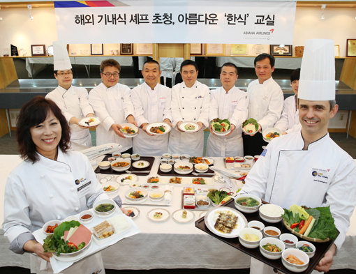 아시아나항공은 22일과 23일 이틀간 인천국제공항 지원단지의 ‘LSG스카이셰프코리아’에서 해외 기내식 셰프를 초청해 한식을 소개하는 ‘아름다운 ‘한식’ 교실‘을 진행했다.