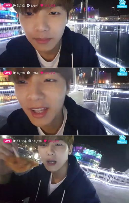 그는 “누구랑 한강에 간 것이냐”는 팬의 질문에 “누구랑 왔냐고? 너”라고 말했다. 또한 그는 “하나둘셋 하면 같이 사진 찍는 거야”라면서 옆에 빈자리를 두고 사진 찍는 포즈를 취했다.