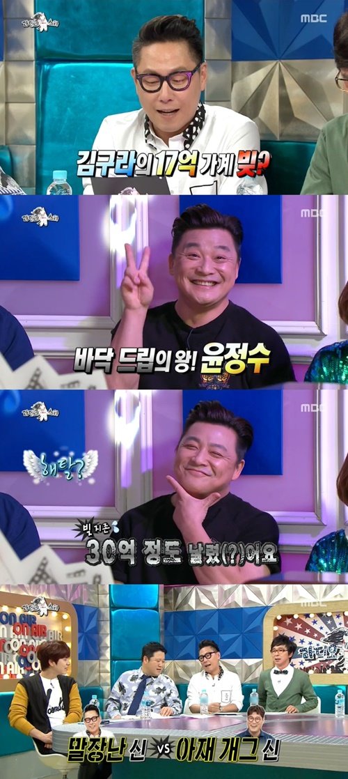 먼저 윤종신은 23일 방송된 MBC ‘라디오스타’에서 윤정수를 소개하면서 “김구라의 빚 17억원은 명함도 못 내민다”고 밝혔다.