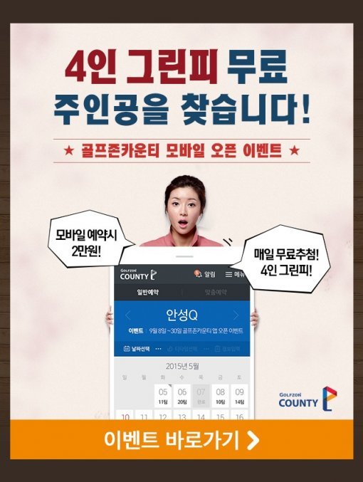 특히 모바일 앱 서비스 오픈 기념, 앱 다운로드 후 첫 로그인 시 추첨을 통해 매일 1팀 4인 전원 그린피를 무료로 제공하고, 이벤트 기간 내 모바일 예약 시 추가 2만원 쿠폰을 지급한다.