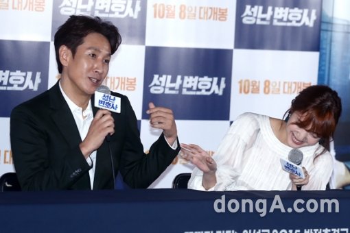 배우 이선균(왼쪽) 김고은이 24일 오후 서울시 성동구 왕십리 CGV에서 열린 영화 '성난 변호사' 언론시사회에 참석해 기자간담회를 하고 있다.