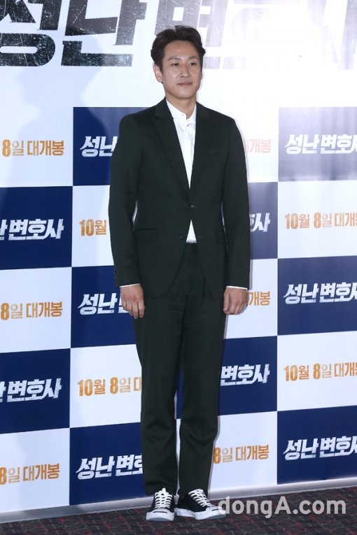 배우 이선균이 24일 오후 서울시 성동구 왕십리 CGV에서 열린 영화 '성난 변호사' 언론시사회에 참석해 포토타임을 하고 있다.