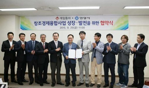 안양시와 ㈜게임동아는 창조적 경제영역을 창출하는 인프라로서 ‘창조경제융합생태계’ 구축을 위한 ‘창조경제융합사업 성장․발전을 위한’ 협약식을 금일(25일) 진행했다.