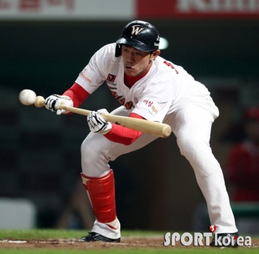 25일 오후 인천 SK행복드림구장에서 열린 `2015 타이어뱅크 KBO 리그 프로야구` SK 와이번스와 삼성 라이온즈의 경기에서 SK 1번타자 이명기가 5회말 1사 2루 때 보내기 번트를 하고 있다.