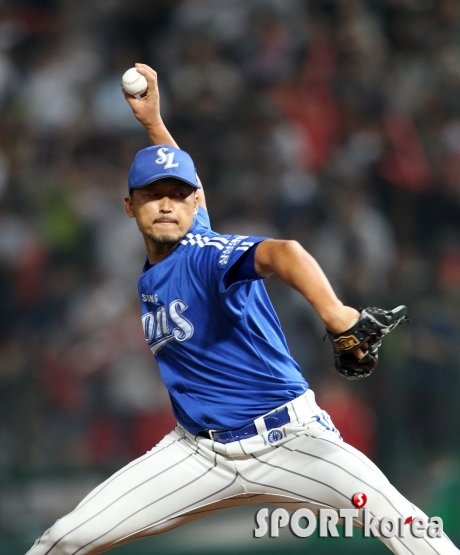 25일 오후 인천 SK행복드림구장에서 열린 `2015 타이어뱅크 KBO 리그 프로야구` SK 와이번스와 삼성 라이온즈의 경기에서 삼성 권오준이 7회말에 등판 투구를 하고 있다.