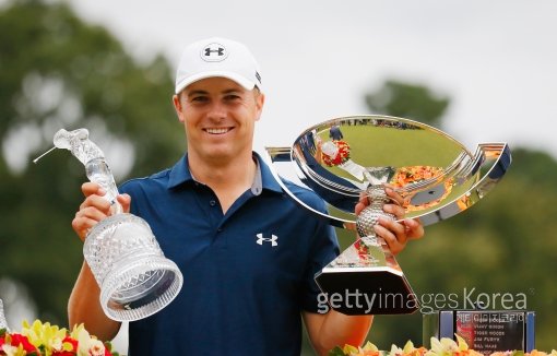 조던 스피스가 28일(한국시간) 끝난 PGA투어 2014∼2015시즌 최종전 투어챔피언십에서 5승째를 따내며 대미를 장식했다. 스피스는 우승상금 148만5000달러와 함께 페덱스컵 플레이오프 최종 우승자에게 주어지는 보너스 상금 1000만 달러까지 손에 넣었다. 스피스가 양 손에 투어챔피언십과 페덱스컵 우승트로피를 들고 활짝 웃고 있다. 사진=ⓒGettyimages멀티비츠