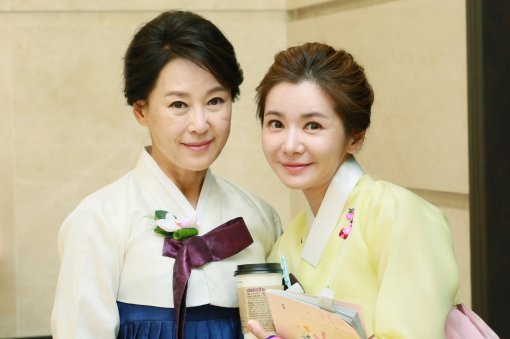 1일 공개된 사진 속 차화연은 따뜻한 엄마 미소를, 장서희는 차화연에게 기대어 환한 미소를 짓고 있다.