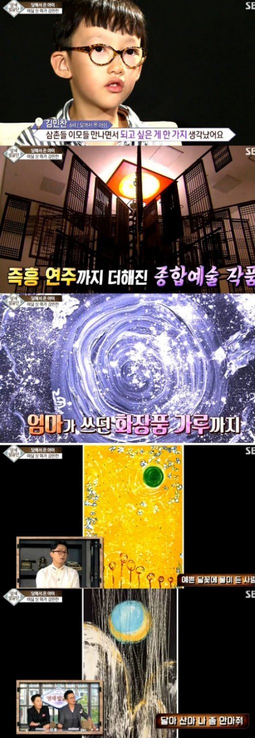 이날 방송에선 김민찬 군의 놀라운 예술작품들이 소개되었고 이에 MC들은 감탄했다.