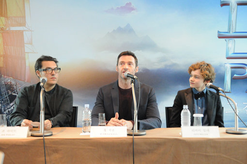 영화 ‘팬’의 휴 잭맨이 1일 오후 일본 도쿄 페니슐라호텔에서 한국 기자들을 만나 더없이 반가운 표정을 감추지 않았다. 연출자 조 라이트 감독, 극중 피터 팬 역의 리바이 밀러와 함께 자리한 그는 “안녕하세요, 감사합니다”며 인사를 건네고는 전날이 리바이 밀러의 생일이었다며 즉석에서 축하노래를 불러주는 자상함으로 현장의 분위기를 이끌었다.