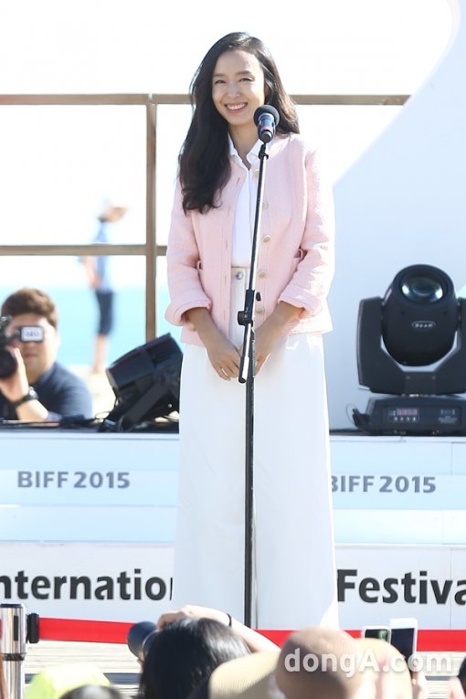 배우 전도연이 2일 오후 부산 해운대 비프빌리지에서 열린 제20회 부산국제영화제 영화 '무뢰한' 무대인사에 참석해 인사를 하고 있다.