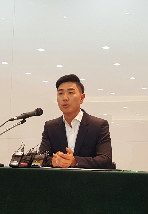 프로골퍼 배상문이 2일 경기도 성남시 운중동 KPGA 회관에서 기자회견 갖고 기자들의 질문에 답변하고 있다.