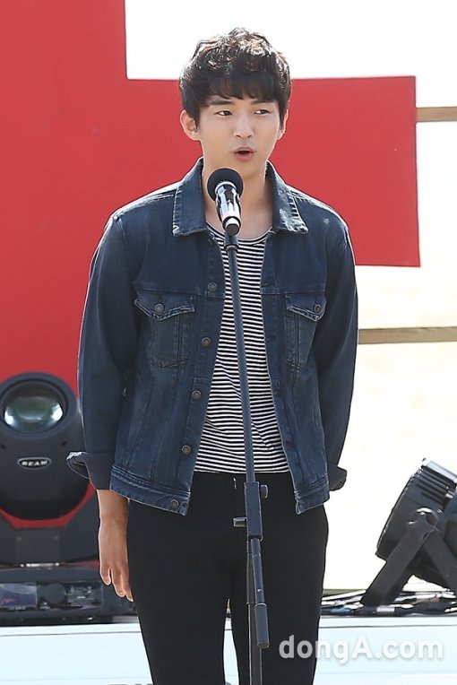 배우 김희찬이 3일 오후 부산 해운대 비프빌리지에서 열린 영화 ‘글로리데이’ 야외무대인사에 참석해 인사를 하고 있다.