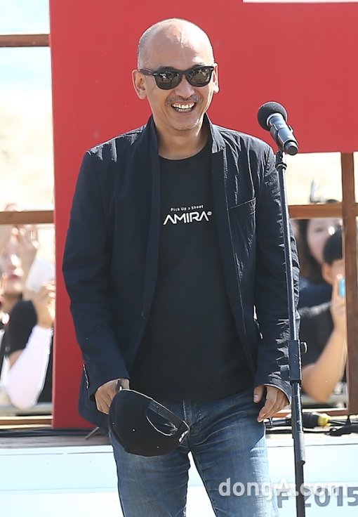 이준익 감독이 3일 오후 부산 해운대 비프빌리지에서 열린 영화 ‘사도’ 야외무대인사에 참석해 인사를 하고 있다.