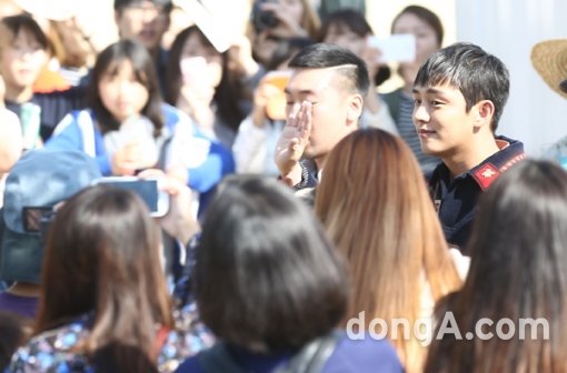 배우 유아인이 3일 오후 부산 해운대 비프빌리지에서 열린 영화 ‘사도’ 야외무대인사에 참석해 인사를 하고 있다.