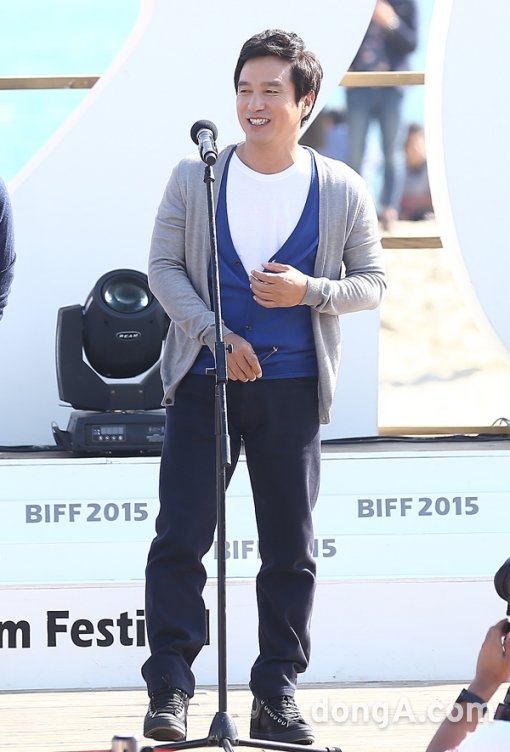 조재현 감독이 3일 오후 부산 해운대 비프빌리지에서 열린 영화 ‘나홀로 휴가’ 야외무대인사에 참석해 인사를 하고 있다.