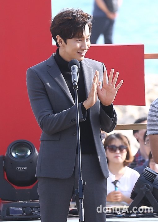 배우 이광수가 3일 오후 부산 해운대 비프빌리지에서 열린 영화 ‘돌연변이’ 야외무대인사에 참석해 인사를 하고 있다.