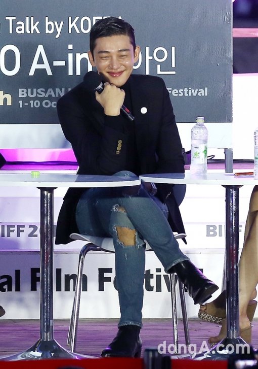 배우 유아인이 3일 오후 부산 해운대 비프빌리지에서 열린 오픈토크에 참석해 질의응답을 하고 있다.
