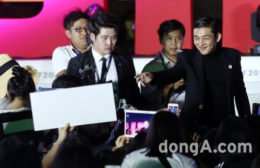 배우 유아인이 3일 오후 부산 해운대 비프빌리지에서 열린 오픈토크에 참석해 질의응답을 하고 있다.