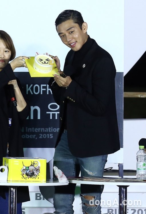 배우 유아인이 3일 오후 부산 해운대 비프빌리지에서 열린 오픈토크에 참석해 생일이벤트를 하고 있다.