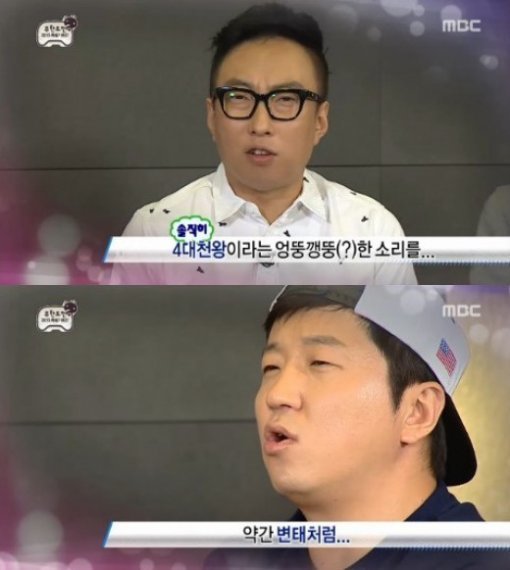 박명수는 "정형돈은 허언증이 있다. 자기가 '4대 천왕'이니 어쩌니 헛소리를 한다"고 말해 웃음을 안겼다.
