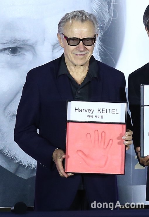 헐리우드 배우 하비 케이틀이 3일 오후 부산 해운대 비프빌리지에서 열린 핸드프린팅 행사에 참석해 포토타임을 하고 있다.