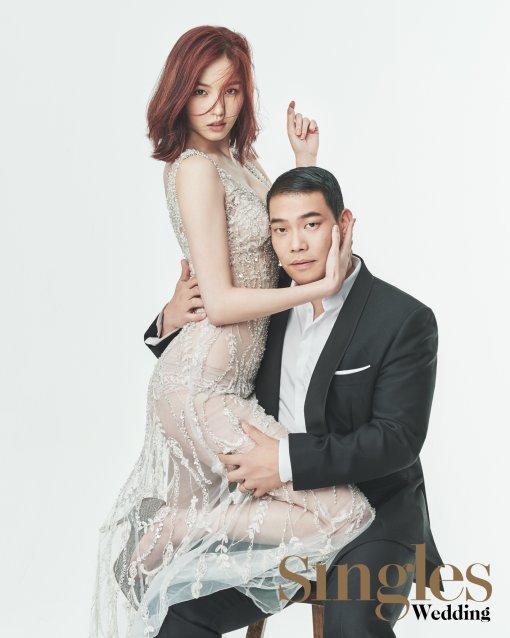 웨딩 매거진 '싱글즈 웨딩' 10월호에서 김새롬과 스타 셰프 이찬오의 웨딩 화보를 공개했다.